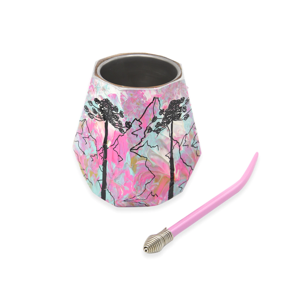 En esta ocasión queremos presentarte el modelo Barents, que combina tonos rosa pastel, verde menta pastel, dorado y blanco con el toque sutil de las montañas y araucarias chilenas que coronan esta combinación perfecta. Con capacidad de 140cc e interior de acero inoxidable que hace mas práctica su limpieza y una vida útil aún más duradera. Incluye de regalo una bombilla de aluminio de color (aleatorio) con filtro de tipo resorte removible de acero inoxidable.